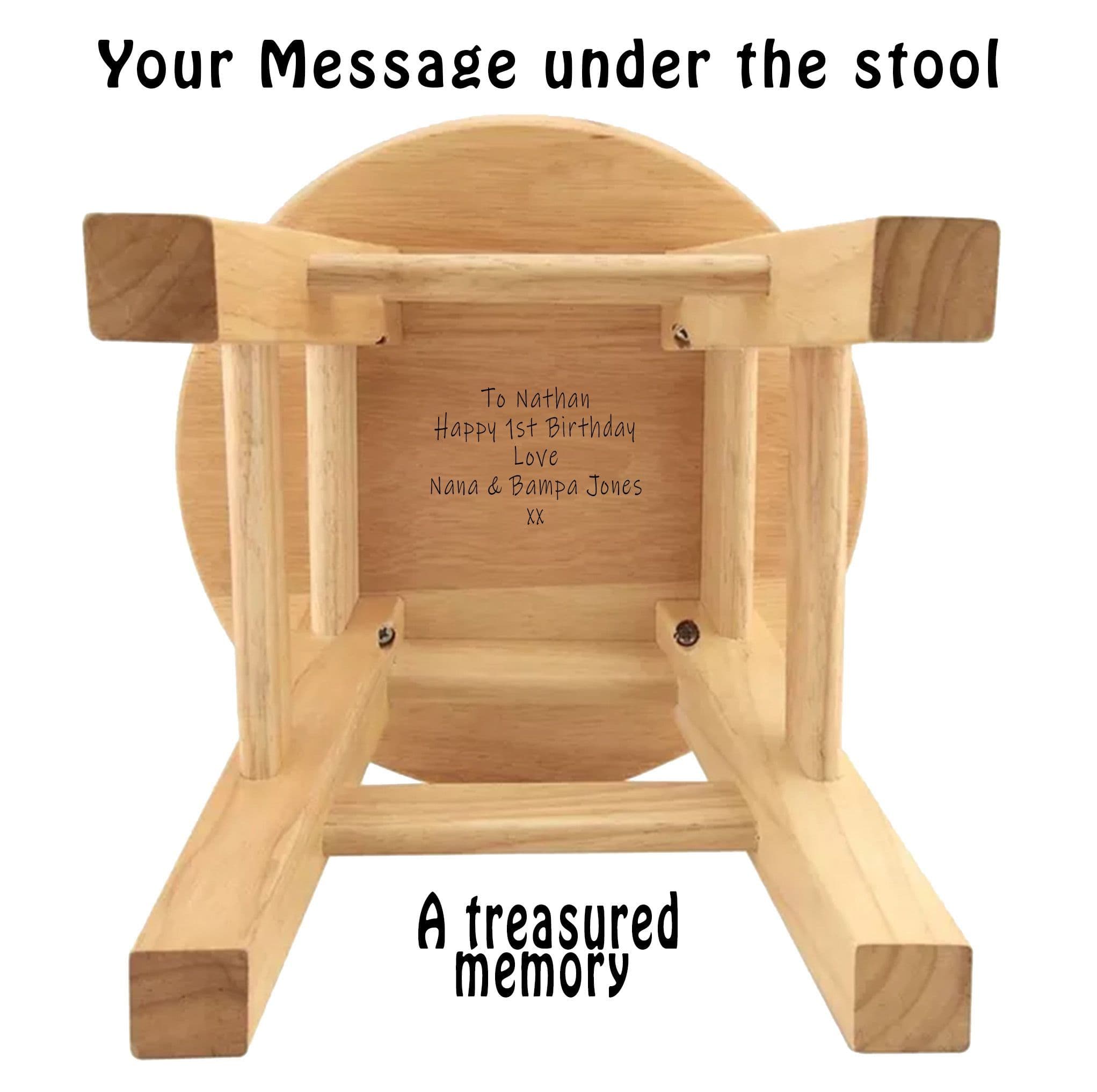 Want to add an extra touch? Choose to have a message engraved on the underside of the stool for a forever keepsake.