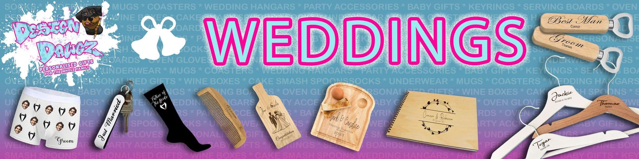 Gifts ideal for the Bridal Party, Groomsmen and Wedding favours.